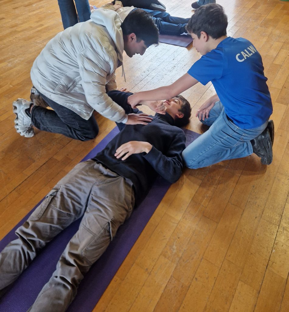 Im Rahmen des Fachs Sozialprojekt erhielt die Klasse 8 in dieser Woche besonderen Besuch: Ein erfahrener Ausbilder des Deutschen Roten Kreuzes (DRK) kam , um den Schülerinnen und Schülern grundlegende Kenntnisse der Ersten Hilfe näherzubringen. Der Projekttag bot nicht nur viel neues Wissen, sondern auch zahlreiche praktische Übungen, bei denen die Kinder aktiv mitmachen konnten.