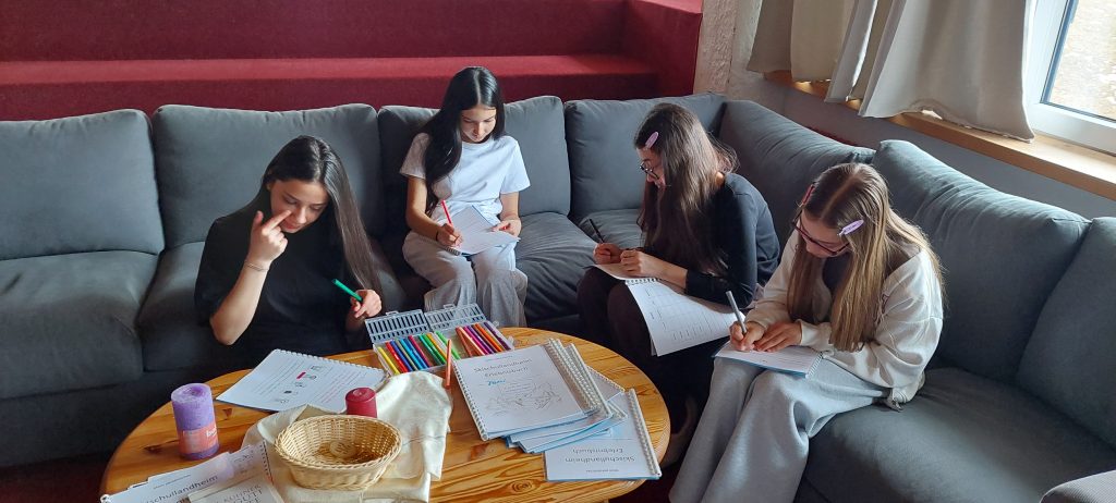 L –   IEDER begleiteten uns in den Tag. Morgens beim Wecken wurde durch die Flure getanzt, danach trafen wir uns zum Singen um fit zu werden.